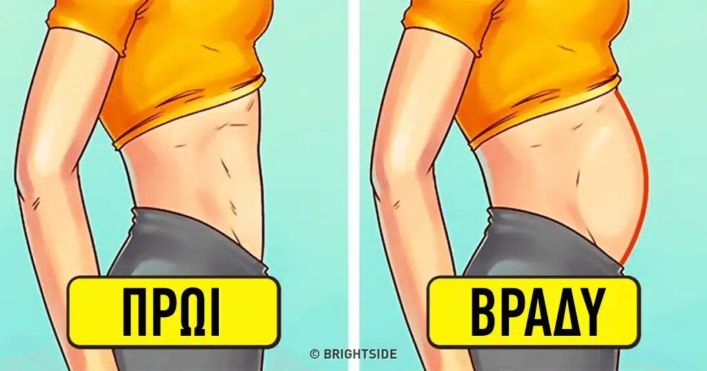 Επίπεδη κοιλιά το πρωί, αλλά διογκώνεται κατά τη διάρκεια της ημέρας (ανεξάρτητα από το αν είστε ή όχι υπέρβαροι)