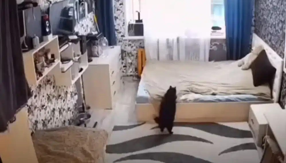 Γάτα στρώνει κρεβάτι: Τον γύρο του διαδικτύου κάνει ένα βίντεο που δείχνει μια γάτα να στρώνει το κρεβάτι που έχει ξεστρώσει προηγουμένως το γατάκι της κάνοντας αταξίες