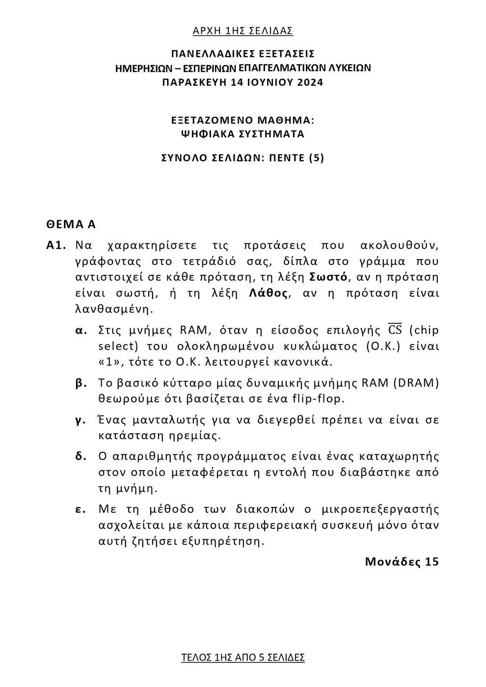 Πανελλήνιες 2024: Οι υποψήφιοι εξετάστηκαν σήμερα σε μαθήματα όπως η Τεχνολογία Υλικών, η Οικοδομική, οι Μηχανές Εσωτερικής Καύσης ΙΙ (ΜΕΚΙΙ) και τα Ψηφιακά Συστήματα. Οι εξετάσεις θα συνεχιστούν για τους υποψηφίους των ΕΠΑΛ μέχρι την επόμενη Δευτέρα, την 17η Ιουνίου.