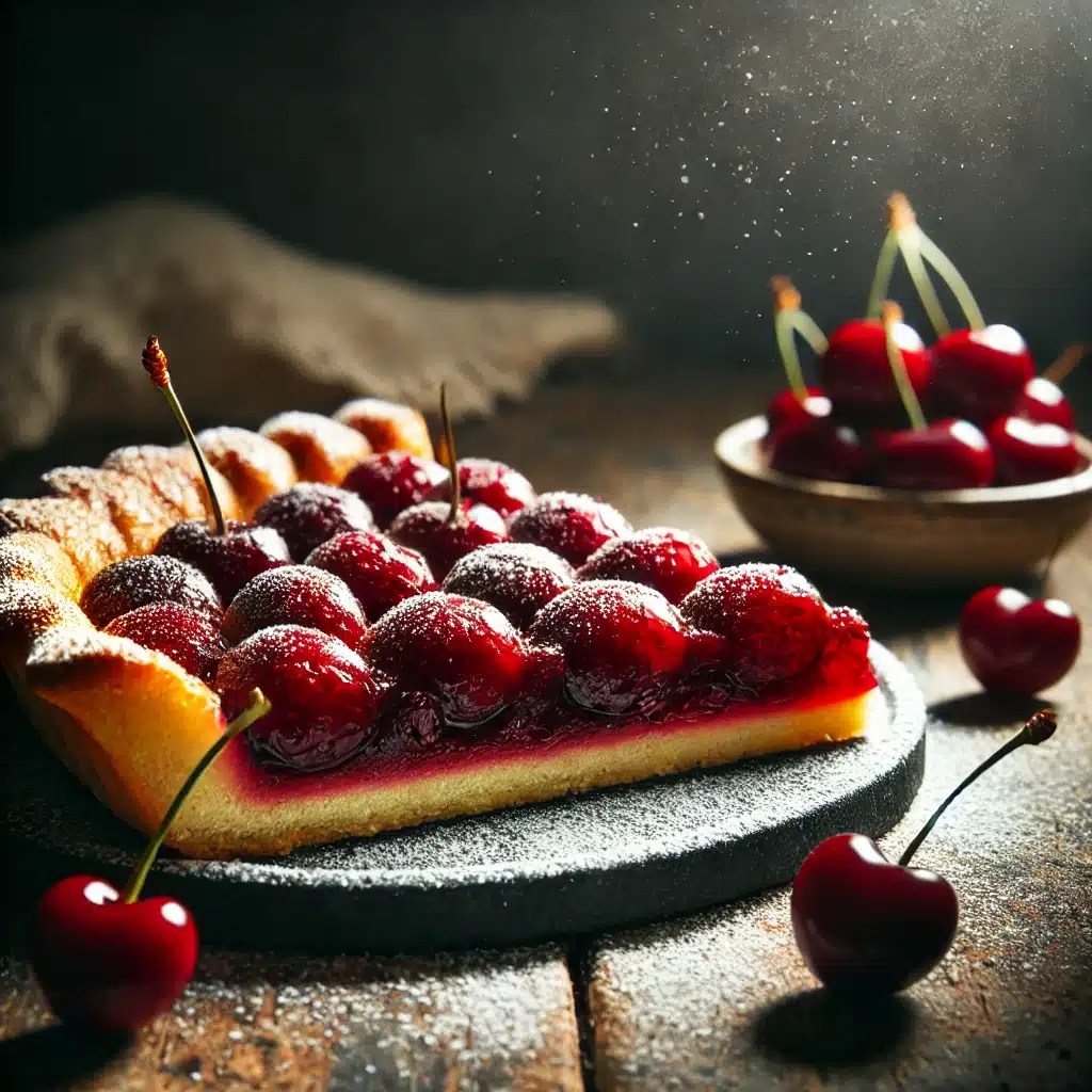 Αυτή η τάρτα με κεράσια είναι μια γευστική απόλαυση που θα αγαπήσετε. Η γλυκύτητα των κερασιών και η τραγανή βάση της τάρτας συνδυάζονται άψογα, δημιουργώντας μια τέλεια ισορροπία γεύσεων.